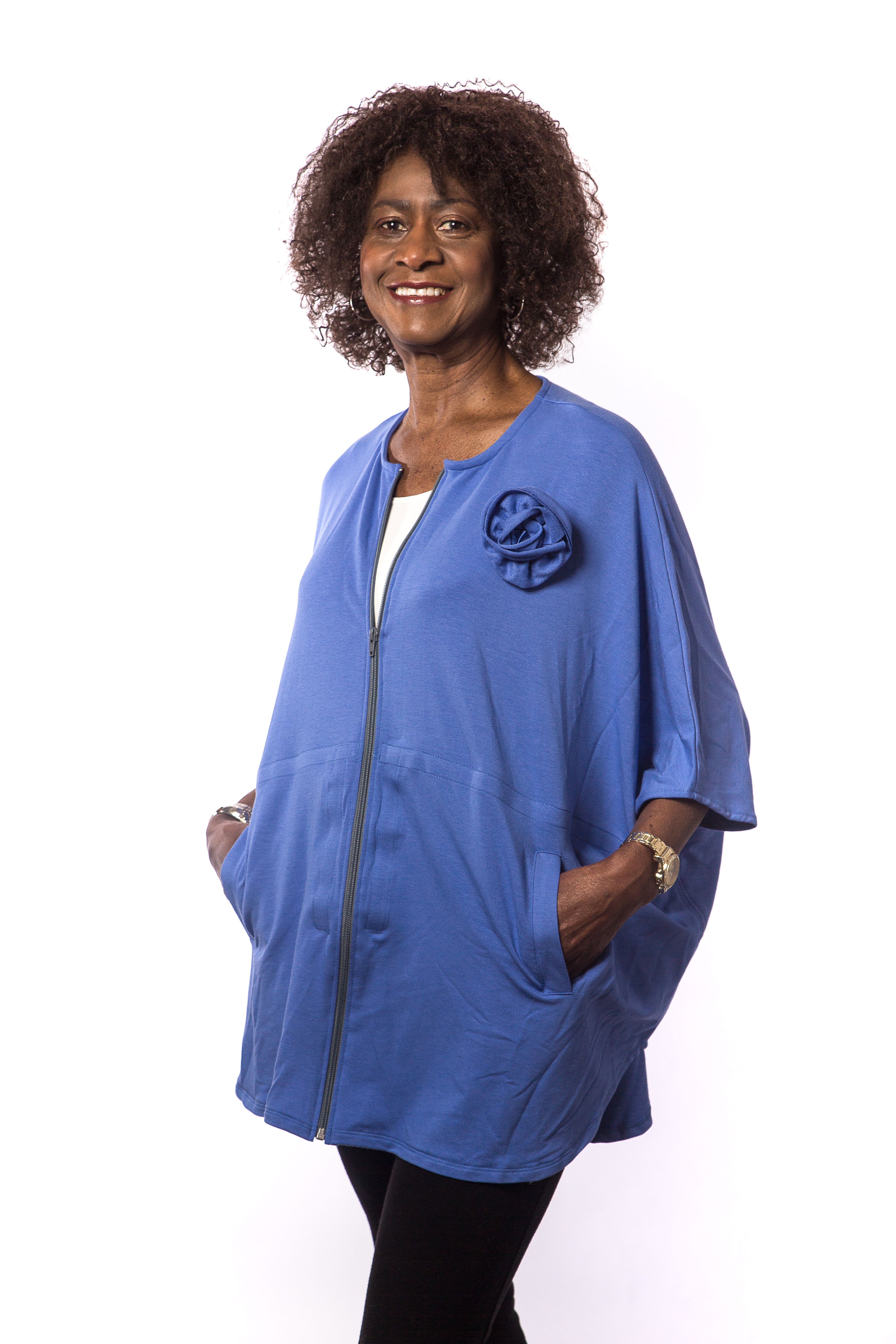 “Tres Bon” is how we would describe this French Terry Cover-Up. Stylish and ultra-soft, the front zipper and loose fit make it easy to take on/off, wear over post-surgery bandages, and for warmth and comfort during chemotherapy and radiation treatment. Two side pockets can hold her personal must-haves like lip balm, ID and that all-important cell phone!