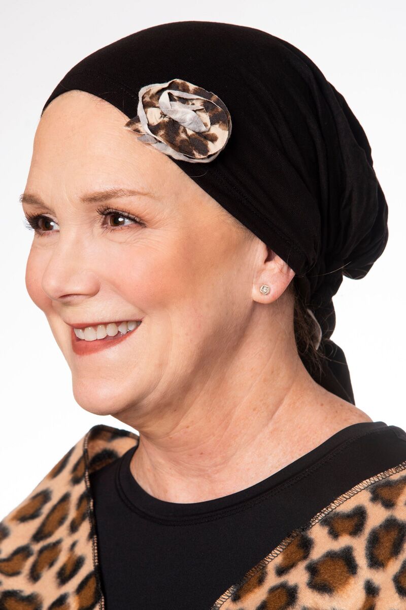 We think this is the best way to “tie one on” during chemo! Hand-tie these head wraps for a comfy, secure fit. Each one comes styled with a fashionable fabric rosette in a contrasting color.